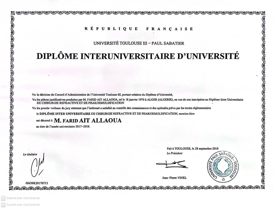• DIU Chirurgie Réfractive & Phakoémulsification Mention Bien — Univ. Toulouse III